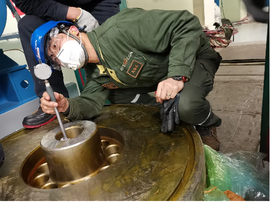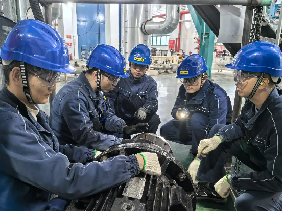 經(jīng)現(xiàn)場核實,果然是檢修時未對系統(tǒng)排水,殘余壓力使泵轉(zhuǎn)子產(chǎn)生向外的軸向力。釋放壓力后,軸承膨脹間隙即刻恢復(fù)至標(biāo)準(zhǔn)范圍,成功避免了軸承二次拆卸更換的無效作業(yè)。面對現(xiàn)場轉(zhuǎn)動設(shè)備的多樣問題,周海東始終保持“質(zhì)疑精神”,不盲從經(jīng)驗、不迷信權(quán)威,總能以精準(zhǔn)判斷破解癥結(jié)。