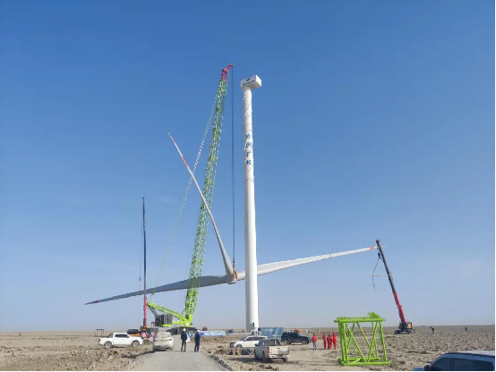 場內道路與集電線路距離遠,從岔路口到最末臺風機,坐車也要近1小時。項目團隊為了不被距離拖住工期,讓基礎、吊裝、線路、匯集站等多作業面并行,按天排、按小時排。在施工高峰期,單日作業面超過95個,單日最多作業人數達1200人,項目累計施工人員近10.1萬人次?!笆┕じ叻迤趤砹?,既要效率,也要質量和安全”,安質環工程師李強說。最終,若羌100萬千瓦風電項目在所有人的努力下,在2023年12月底順利實現全容量并網投運,若羌50萬千瓦風電項目也于2024年9月開工建設,于2024年12月底并網投運,送出線路改接至巴鐵若750千伏一次送電成功,成為第一家接入巴鐵若750千伏變電站的發電企業?!耙着娘L”在這里變成了穩定的電?!皼]想到你們竟然能在這么短的時間內,在死亡之海的羅布泊完成項目建設。后續我們也將持續做好服務與支持,共同助力若羌縣經濟發展。”國網若羌縣供電公司的人員來訪時笑著說道。
