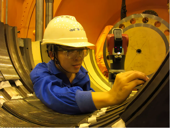 “工期要縮短,安全要提升,必須找到新路。”2013年前后,激光跟蹤測量技術進入原帥和團隊的視野。這項用于大飛機裝配的高精度技術,能否用于核電汽輪機?行業內沒有成熟經驗可參考。