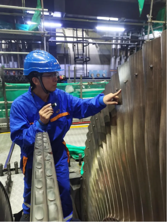 2022至2024年間,原帥將辦公室和生活的重心完全挪到了大修現場,一個一個難題啃,一步一步把項目往前推——新部件與舊基座如何完美匹配?上百次的大件吊裝如何能夠最大限度地減少?原帥和項目組同事提出“工廠預裝+現場激光精調”的工藝路線,將大量找正、匹配工作前移。然而,挑戰總是不期而至。在前期檢查中,他憑借近乎苛刻的細致,發現了設計圖紙上新軸承缺少關鍵調整墊片、末級葉片間隙預留不足等問題。“這些問題如果留到安裝階段才發現,耽誤的就不是幾天,可能是幾周。” 項目組立即組織協調設計方、制造廠,推動問題在安裝前得以解決。