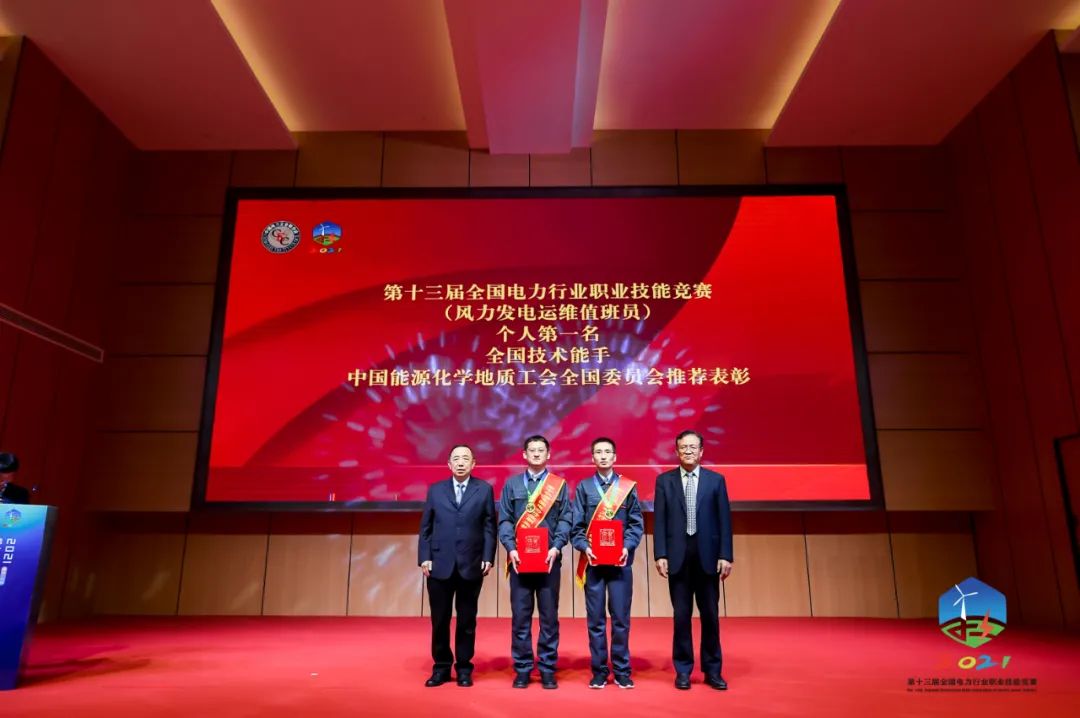 經過兩天的激烈比拼,來自國家能源集團的劉磊、于重陽和羌慰、高鵬脫穎而出,分別獲得第1名、第2名。4位選手將報請人力資源和社會保障部核準后,授予“全國技術能手”稱號;同時,4位選手將由中國電力企業聯合會直接晉升技師職業技能等級,已具有技師職業資格或職業技能等級的,可晉升高級技師職業技能等級。對獲決賽第1名的2位選手,符合國家有關表彰獎勵條件的,中國能源化學地質工會全國委員會向全國總工會推薦表彰獎勵。決賽取得第3至8名成績的12位選手,由中國電力企業聯合會直接晉升高級工職業技能等級;已具有高級工職業資格或職業技能等級的,可晉升技師職業技能等級。決賽獲得前10名的20位選手,由中國電力企業聯合會授予“電力行業技術能手”稱號。決賽獲得第11名至20名的20位選手,由中國電力企業聯合會授予“電力行業優秀技能選手”稱號。