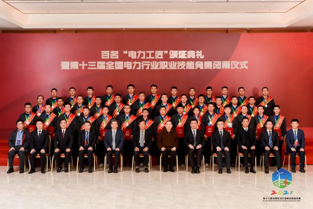 為弘揚勞模精神,體現“匠心筑夢,技能傳承”主題,競賽組委會特別邀請了百名“電力工匠”代表為取得“電力行業技術能手”“電力行業優秀技能選手”稱號的獲獎選手頒發證書及獎牌。