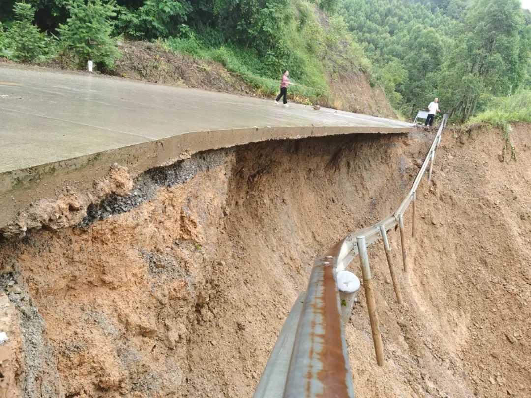 “前面路基坍塌了,你們繞道吧,這里不能過去了!”7月1日一早,我與駐村隊員、村“兩委”在滑坡主干道路段排查安全隱患時不停的勸返群眾。