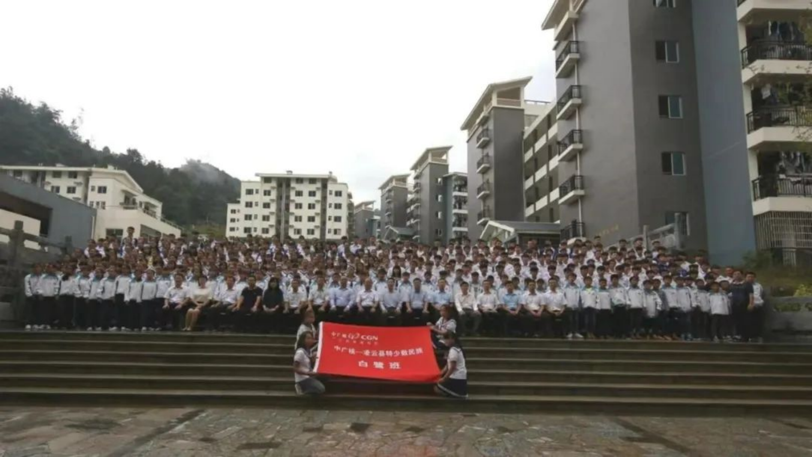 ▲2017年10月,中廣核首期教育幫扶白鷺班——“中廣核-凌云縣特少數民族白鷺班”開班儀式在廣西凌云縣中學舉行