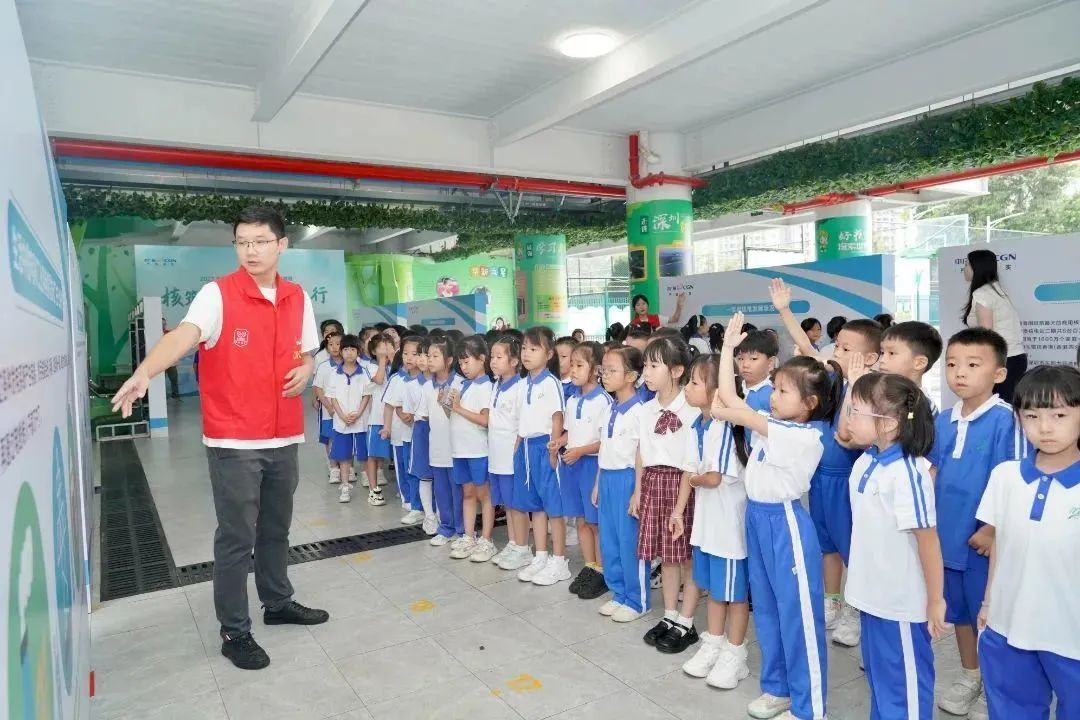 ▲中廣核運營走進深圳市華新小學(xué),以科普展覽等形式為近千名師生帶來科普大餐