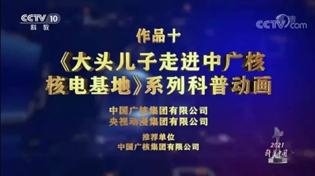 2021年,聯(lián)合央視創(chuàng)作的《大頭兒子走進中廣核核電基地》系列科普動畫,榮獲“典贊·2021科普中國”十大科普作品。