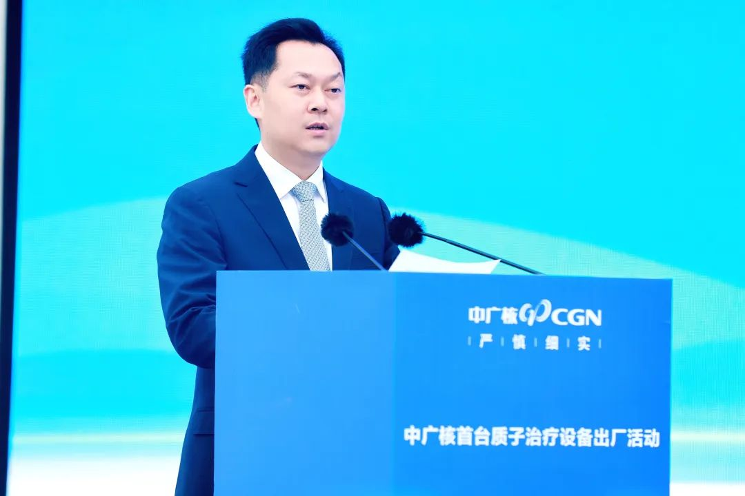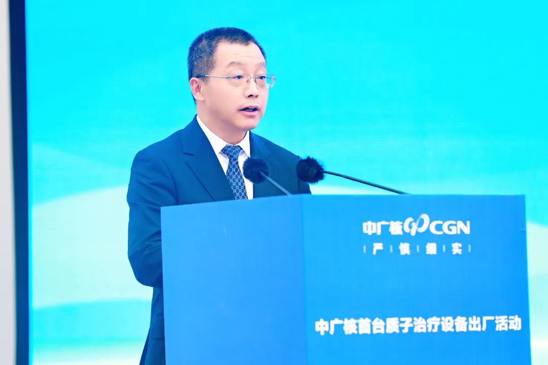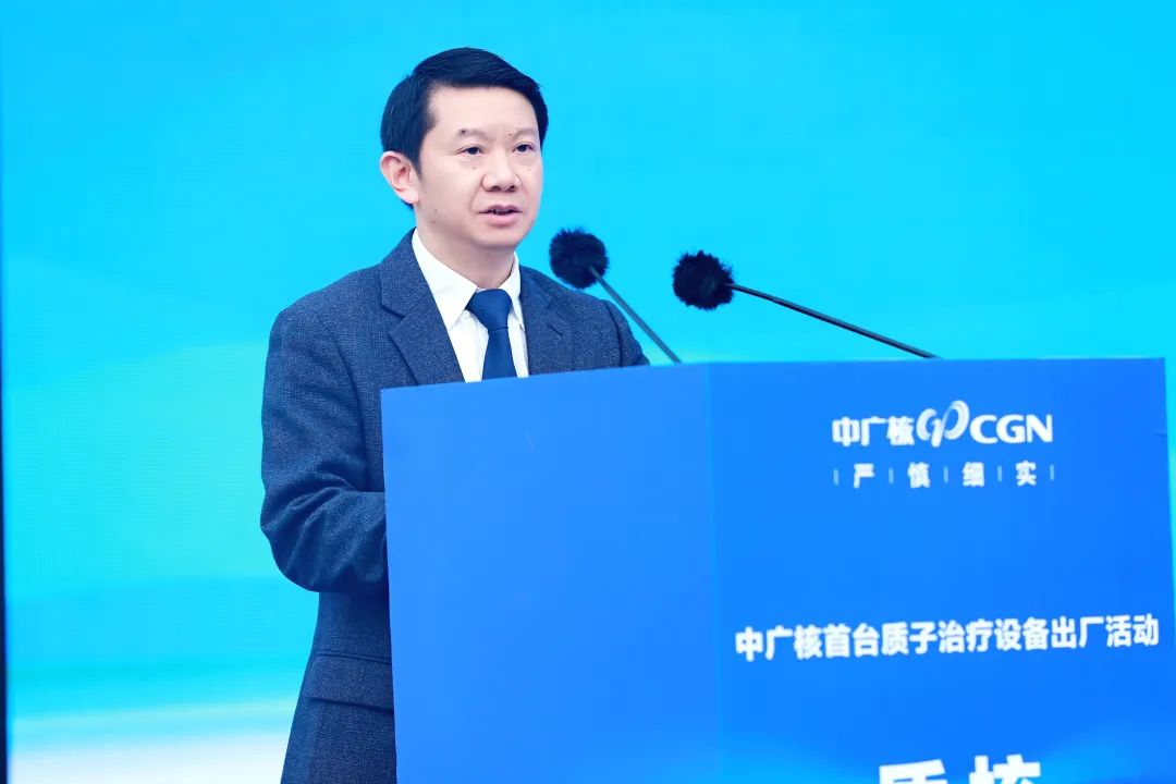 當(dāng)日下午,中廣核首臺質(zhì)子治療設(shè)備出廠活動在四川綿陽核醫(yī)療健康產(chǎn)業(yè)園舉辦。中國廣核集團(tuán)有限公司黨委副書記、總經(jīng)理高立剛,四川省經(jīng)濟(jì)和信息化廳黨組成員、副廳長曾吉明,綿陽市政府黨組成員、副市長鄧輝,成都醫(yī)投華西國際腫瘤治療中心醫(yī)院院長曾勇出席大會并致辭。集團(tuán)公司黨委常委、副總經(jīng)理李亦倫主持會議。四川省科學(xué)技術(shù)廳黨組成員、副廳長楊品華,四川省衛(wèi)健委副主任、機(jī)關(guān)黨委書記張峰,四川省政府駐廣州辦事處主任王德勝,四川省藥品監(jiān)督管理局副局長周全,綿陽市委副書記、政法委書記黃朝陽,綿陽市人大常委會副主任文剛,中國工程物理研究院核物理與化學(xué)研究所總工程師、涪江實驗室主任彭述明,綿陽市游仙區(qū)委書記韓曉清,成都醫(yī)療健康投資集團(tuán)有限公司總經(jīng)理李柯出席大會。