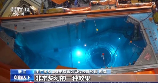 “這個(gè)區(qū)域就是整個(gè)核島廠房最核心的區(qū)域,我們一般叫反應(yīng)堆水池。這里面的液體是含硼酸的溶液,所以呈現(xiàn)的效果是非常漂亮,非常夢(mèng)幻的。現(xiàn)在因?yàn)槭钦w的系統(tǒng)調(diào)試階段,這個(gè)階段把水先充上,檢查整個(gè)水池的泄漏情況,主要是對(duì)前期的密封效果進(jìn)行檢驗(yàn)。”熊威介紹到。