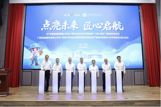 調(diào)研期間,高立剛還參加了中廣核服、防城港核電與廣西電力職業(yè)技術(shù)學(xué)院聯(lián)合舉辦的“點(diǎn)亮未來,匠心啟航”企校合作啟動儀式。集團(tuán)所屬單位創(chuàng)新嘗試將“鄉(xiāng)村振興”這一“國之大者”與“產(chǎn)業(yè)工人隊(duì)伍建設(shè)”這一制造強(qiáng)國根基工程緊密融合,持續(xù)探索以人才賦能推動地方發(fā)展與產(chǎn)業(yè)振興的新路徑。