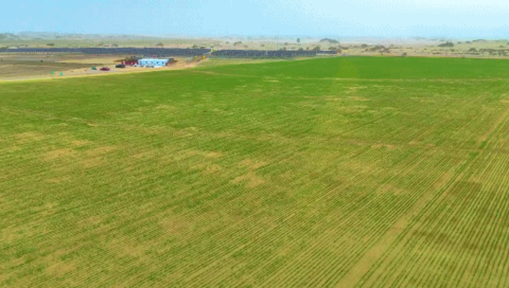 在中廣核南疆和田洛浦萬(wàn)畝沙漠治理示范項(xiàng)目,沙脊背風(fēng)處已經(jīng)泛出一層淺綠。據(jù)項(xiàng)目負(fù)責(zé)人介紹,項(xiàng)目是落實(shí)國(guó)家荒漠化綜合防治的重點(diǎn)示范項(xiàng)目。項(xiàng)目把“治沙-覆綠-農(nóng)光互補(bǔ)”打成一套組合拳,示范項(xiàng)目總規(guī)模為2.2萬(wàn)畝。其中,已完成美洲狼尾草(含復(fù)播苜蓿)種植區(qū)約4027畝、耐旱植物種植區(qū)約5830畝、防風(fēng)林187畝,土壤化改造7715畝,耐旱草類覆綠約5060畝,復(fù)播紫花苜蓿1800余畝,多樣化試驗(yàn)區(qū)84畝,工程治沙187畝。