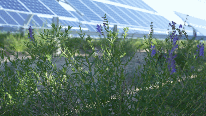 “以前這都是鳥不拉屎的沙漠,現(xiàn)在治理完,來(lái)了好多鳥聚集在這邊?!碑?dāng)?shù)卮迕癜⒘四尽ざ鄟?lái)提說(shuō)。據(jù)了解,光伏板降低近地風(fēng)速,也遮去了部分直射,地表蒸發(fā)強(qiáng)度下降,狼尾草、苜蓿得以在板下、板間成片扎根,邊界再由草方格、防風(fēng)林“鎖邊”。隨著植被恢復(fù),場(chǎng)區(qū)鳥類活動(dòng)明顯增多,生物多樣性提升,沙塵天氣發(fā)生頻率可感下降,微氣候變化肉眼可見(jiàn)。