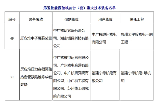 近日,國家能源局發(fā)布2025年第4號公告,決定將82項技術(shù)裝備列為第五批能源領(lǐng)域首臺(套)重大技術(shù)裝備,中廣核“反應(yīng)堆中子屏蔽裝置”“反應(yīng)堆壓力容器頂蓋熱套管缺陷維修成套裝備”兩項產(chǎn)品獲批列入。