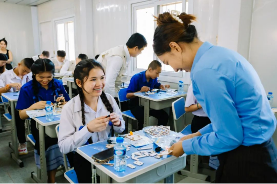 ▲中廣核“螢火計(jì)劃”志愿者走進(jìn)萬象省巴恩縣貧困生培訓(xùn)學(xué)校