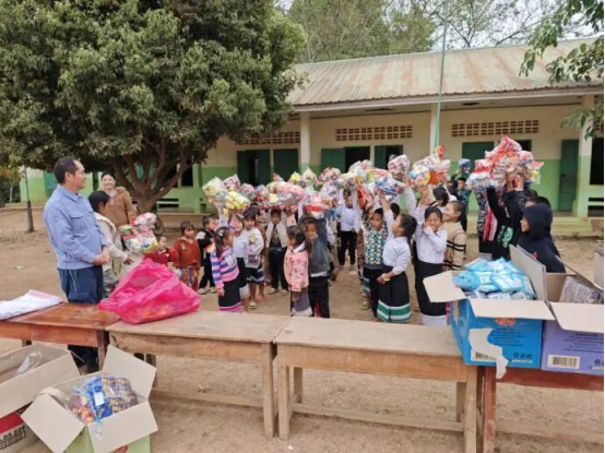 ▲老撾公司螢火計(jì)劃“愛心早餐”幫扶行動