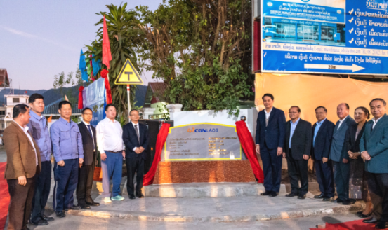 ▲老撾烏多姆賽省孟賽縣建設(shè)通車“CGN路”揭牌儀式