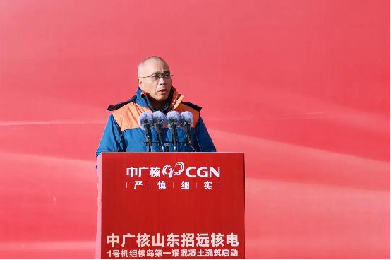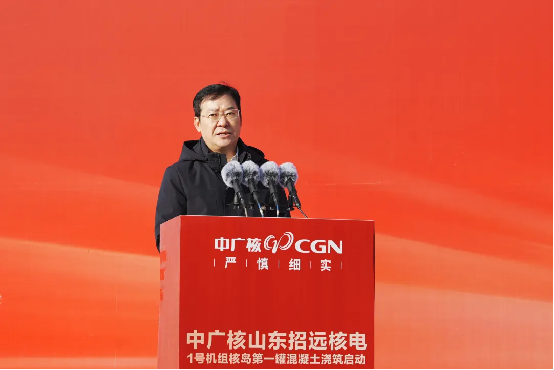 龐松濤代表集團公司對項目建設全面啟動表示祝賀,對國家相關部委、山東省各級黨委和政府給予的指導支持,以及合作伙伴、一線建設者的辛勤付出表示感謝。他指出,作為中廣核第十個核電基地,招遠核電項目的高質量推進意義深遠,不僅為集團“十四五”目標實現提供了有力支撐,為“十五五”開篇布局筑牢根基,更為山東加快構建新型能源體系注入強勁動力,為保障國家能源安全、實現“雙碳”目標貢獻中廣核力量。他對全體建設團隊提出三點要求:一要提高政治站位,深學篤行習近平總書記對核電行業和中廣核的重要指示批示精神,堅守“安全第一、質量第一、追求卓越”原則,嚴守安全生產紅線,確保核安全絕無一失。二要聚焦關鍵技術攻關與數字化轉型,創新核能綜合利用模式,形成可復制推廣的技術和管理經驗,持續迭代提升建設水平。三是要立足“高標準打造百年精品工程”定位,深度融入地方能源規劃,積極培育核風光儲一體化清潔能源產業集群與新質生產力,助力山東省能源綠色低碳轉型。