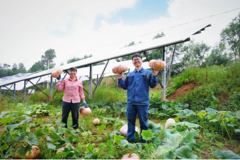 在云南楚雄的群山間,我們鋪展出一幅“陽光與土地”的共生畫卷:湛藍的光伏板下,火紅的辣椒、金黃的南瓜正逢豐收。新能源云南公司創新探索“能源+”聯農助農新路徑,推動“茶光、農光、牧光、林光、藥光”融合發展,通過“零元反包”惠農機制,讓超1.3萬畝光伏板變為農戶的“綠色聚寶盆”,年均創造產值超1500萬元,真正實現“板上綠色發電,板下金色收成”。