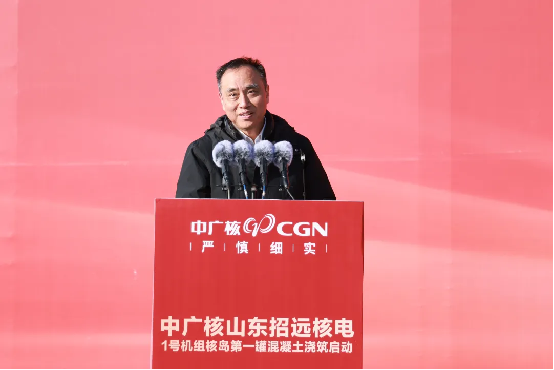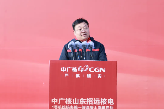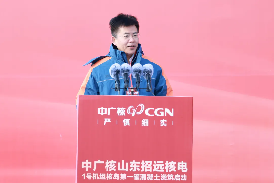 龐松濤代表集團公司對項目建設全面啟動表示祝賀,對國家相關部委、山東省各級黨委和政府給予的指導支持,以及合作伙伴、一線建設者的辛勤付出表示感謝。他指出,作為中廣核第十個核電基地,招遠核電項目的高質(zhì)量推進意義深遠,不僅為集團“十四五”目標實現(xiàn)提供了有力支撐,為“十五五”開篇布局筑牢根基,更為山東加快構(gòu)建新型能源體系注入強勁動力,為保障國家能源安全、實現(xiàn)“雙碳”目標貢獻中廣核力量。他對全體建設團隊提出三點要求:一要提高政治站位,深學篤行習近平總書記對核電行業(yè)和中廣核的重要指示批示精神,堅守“安全第一、質(zhì)量第一、追求卓越”原則,嚴守安全生產(chǎn)紅線,確保核安全絕無一失。二要聚焦關鍵技術(shù)攻關與數(shù)字化轉(zhuǎn)型,創(chuàng)新核能綜合利用模式,形成可復制推廣的技術(shù)和管理經(jīng)驗,持續(xù)迭代提升建設水平。三是要立足“高標準打造百年精品工程”定位,深度融入地方能源規(guī)劃,積極培育核風光儲一體化清潔能源產(chǎn)業(yè)集群與新質(zhì)生產(chǎn)力,助力山東省能源綠色低碳轉(zhuǎn)型。